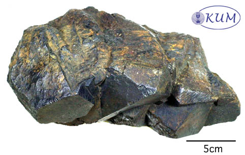 木浦鉱山産磁鉄鉱は,d 面のみよりなる黒褐色,不透明結晶の集合体で,大きい結晶は径10cmに達する.結晶面には,長い対角線の方向に条線がある.