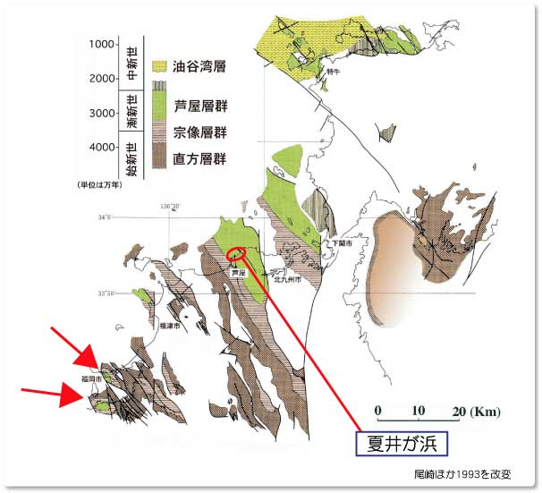 北九州市若松区の夏井が浜の地層の調査から、地球環境がおおきく変わったということがわかりました。くわしくは