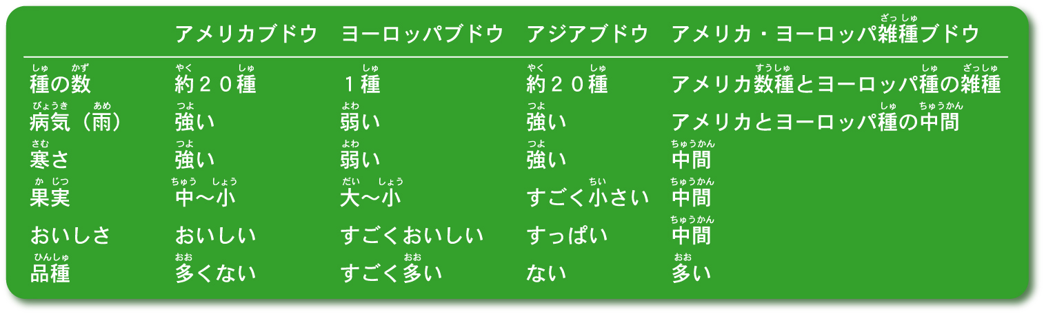この3地域に生き残ったブドウをそれぞれアメリカブドウ、アジアブドウ、ヨーロッパブドウと呼びます。