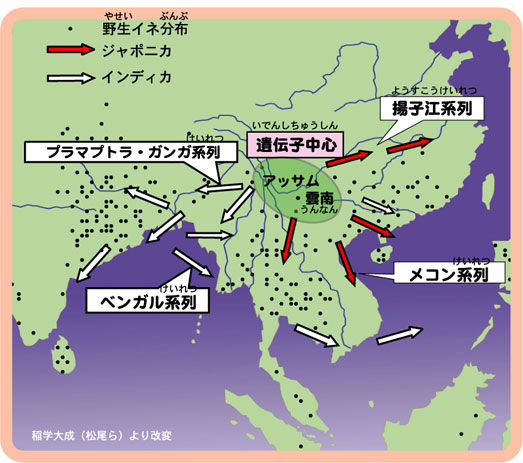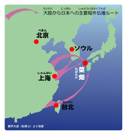 ジャポニカ型である揚子江系列のイネがやがて日本へ伝播したであろうと考えられています。