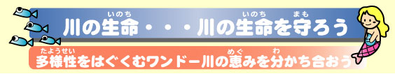| ワンドを復元し、川の生命多様性を回復させよう 川は私たち人間の暮らしには欠かせません。そのため、私たちはこれまで人間に都合のいいように川を造り変えてきました。その結果、川にもともとすんでいたさまざまな生き物たちにとってすみにくい川となりました。その反省から、ワンドを復元させるためにワンドのしくみを調べています。 |
