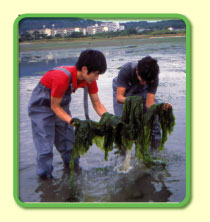 これからどうしたらよいか? アオサ類が増えないようにする良い方法は今のところ見つかっていません。できるだけ集めて捨てているのが現状です。これは我々にとって困ったことです。しかし、決して忘れてならないことは、アオサ類が増えるのは、我々人間がそういう環境をもたらしたからです。難しいことかもしれませんが、できるだけ水質を浄化していく努力が必要なのです。 |