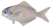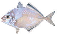 マナガツオ 全長60cmになる。高級おかずとされ、刺身、照り焼き、味噌漬けなどにするとおいしい。 |