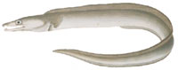 ハモ 10年で35cm。6〜11月に多く獲れる。すし、天ぷら、かば焼、湯引き、吸物、ちくわやかまぼこの材料とされる。 |