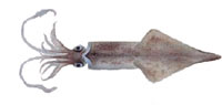 ケンサキイカ 寿命は1年。雌はいちばん大きいもので41cm、雄は50cm。肉はおいしく、刺身、煮つけ、するめなどになる。 |