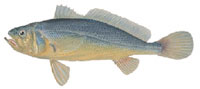 キグチ 5年で35cm。小さな魚はちくわやかまぼこの材料とされるが、中くらいやおおきな魚は塩焼き、天ぷら、あんかけなどにするとおいしい。 |