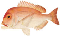 アカアマダイ 8年で雄32cm、雌29cm。肉は白くてやわらかく、塩干しや味噌漬けにするとおいしい。 |