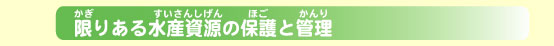 | (ご父兄の皆様、お子さまに説明してあげて下さい。) 東シナ海では、日本、中国、韓国の排他的経済水域が接していますが、そこで暮らす魚たちには国境はなく、これらの水域を自由に行き来しています。したがって、これらの水産資源を保護、管理するためには3カ国が足並みをそろえて共通の対策をとらないと、十分な効果は見込まれません。 「排他的経済水域」とは? ある国がほかの国に対して「海岸から沖合のここまでの海のなかの資源は私の国のものだ」と主張することのできる水域です。魚などだけでなく、海の底に埋まっている鉱物資源などについても同じようにあつかいます。たとえて言うなら「海の天然資源の国境線」ということになります。 |