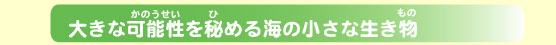 | 白い珊瑚にかこまれた南の海、氷におおわれた南極の海、200℃をこえるあつい水が吹き出る海底火山、1万メートルをこえる深い海など、海には陸上にはないいろいろな環境があります。 生命(いのち)は、37億年前に海で生まれたといわれていますが、陸の生き物の歴史は、まだ数億年しかありません。海には、陸上には上がらなかった生き物の子孫も残っていますし、特別な環境に慣れた生き物もいます。海の生き物はシーフードとして私たちの食卓をにぎわすだけでなく、ヒトの健康を守る薬や生命科学の研究にも役立っています。私たちが未来を豊かに生きるためには、海の生き物の特別な能力や生き物が創り出すものを詳しく調べ、人々の未来と健康に役立てていくことが大切です。これが‘マリンバイオ’です。 |