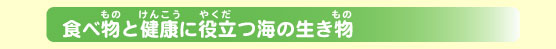 | 海にたくさんある茶色の海藻はアルギン酸とよばれる多糖をたくさん持っています。この多糖は、カルシウムイオンがあるとゼリーのようになるので、アイスクリームをふんわりとさせたり、麺に歯ごたえを与えるのに使われています。また、海藻は病気と闘う薬にもなります。私たちは、海藻からとったオリゴ糖がガン細胞を退治することを見つけました。そして、イトマキヒトデから取り出したタンパク質が大腸ガンを見つけるのに役立つこともわかりました。クラゲは海水浴で人を刺すので嫌われていますが、私たちはクラゲから生命科学の研究に役にたつ新しい酵素を見つけ、クラゲも人間にとってたいへん役に立つことがわかりました。 | |