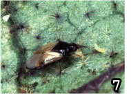 写真7 ミナミキイロアザミウマ幼虫を捕食中のナミヒメハナカメムシ