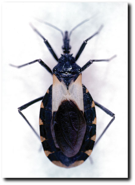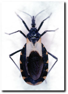 中南米ではシャーガス病(アメリカ型トリパノソーマ症)の媒介者として知られています。感染サシガメがヒトを吸血するとその部位で糞をしますが、その糞便中に感染型の原虫(Trypanosoma