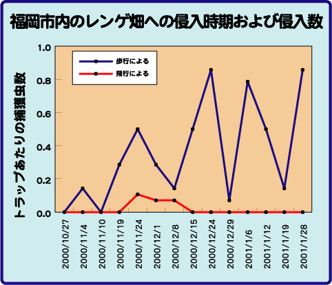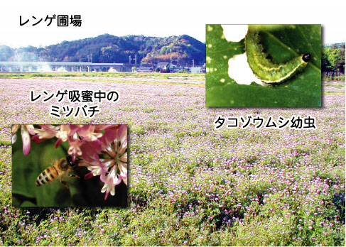 | アルファルファタコゾウムシは、侵入害虫(1982年)です。この虫はレンゲを好んで摂食するため、レンゲを蜜源としている養蜂家にとって、害虫と言えます。 このゾウムシの防除法確立を目指し、天敵の探索や、野外行動の調査をしています。 |