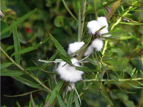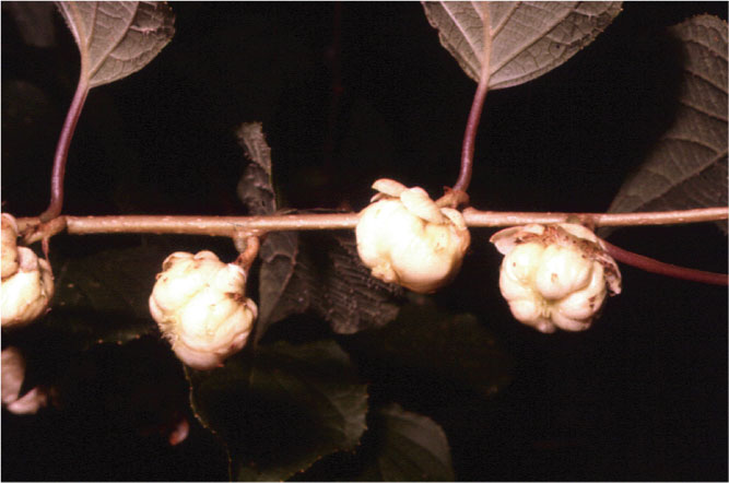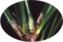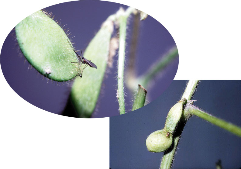 この虫こぶがつくられると、クリ果実の収量は激減し、時には木ごと枯れてしまうこともあります。 この虫こぶが多数形成されると,他の害虫との複合被害によりアカマツやクロマツが枯死することもあります。 このタマバエがダイズの生長中のさやに産卵すると、さやはくびれたようになり、発育を停止して落下しやすくなってしまいます。 |