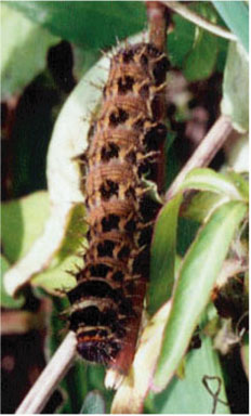 カバマダラの場合も温暖化がベースとなって最近の北進が加速されているものと思われます。福岡市で幼虫が発見されたのは初めてです(矢後ら、2000による)。