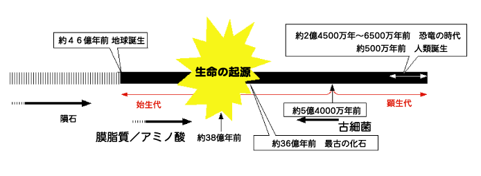 | オパーリンのコアセルベート説やミラーの実験など、私たちの体をつくる主な分子(アミノ酸など)が生成するまでと、それらが集まって、”機能”を獲得して生物になるまでについて興味深い仮説が唱えられ、実験が行われてきました。 |