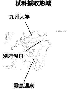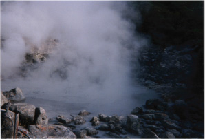鹿児島県霧島温泉、八幡地獄の写真です。温度は90-75度、pHは2.2です。ここにも熱水1mlあたり、およそ百万の微生物が棲んでいます。
